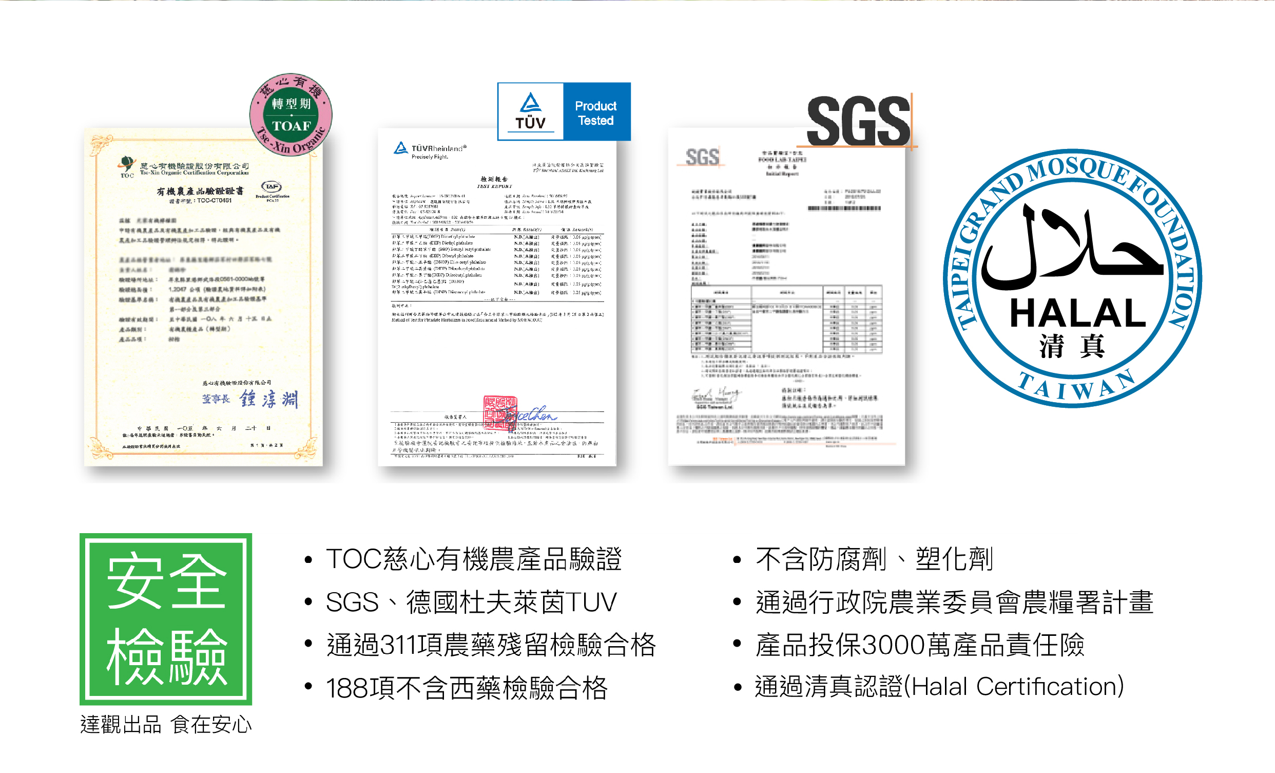 「達観製品、食べて安心」第三者検査機関による公正な検査および国の残留農薬安全基準に合格した台湾原生ヒスイレモンを使用しています。果実の選定から厳しいチェックを行い、安全・優良な食品をお約束します! 活性の証明がある