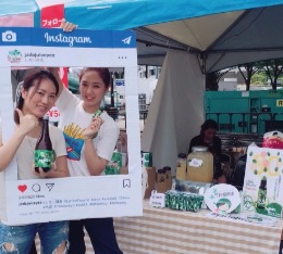 萃綠檸檬提供了許多飲品要給日本民眾喝飽飽,喝健康。另外也提供了可以讓日本名中拍照的instagram拍照立牌,讓日本民眾不僅在逛街聽產品的時候也可以拍照跟大家分享台灣好物。