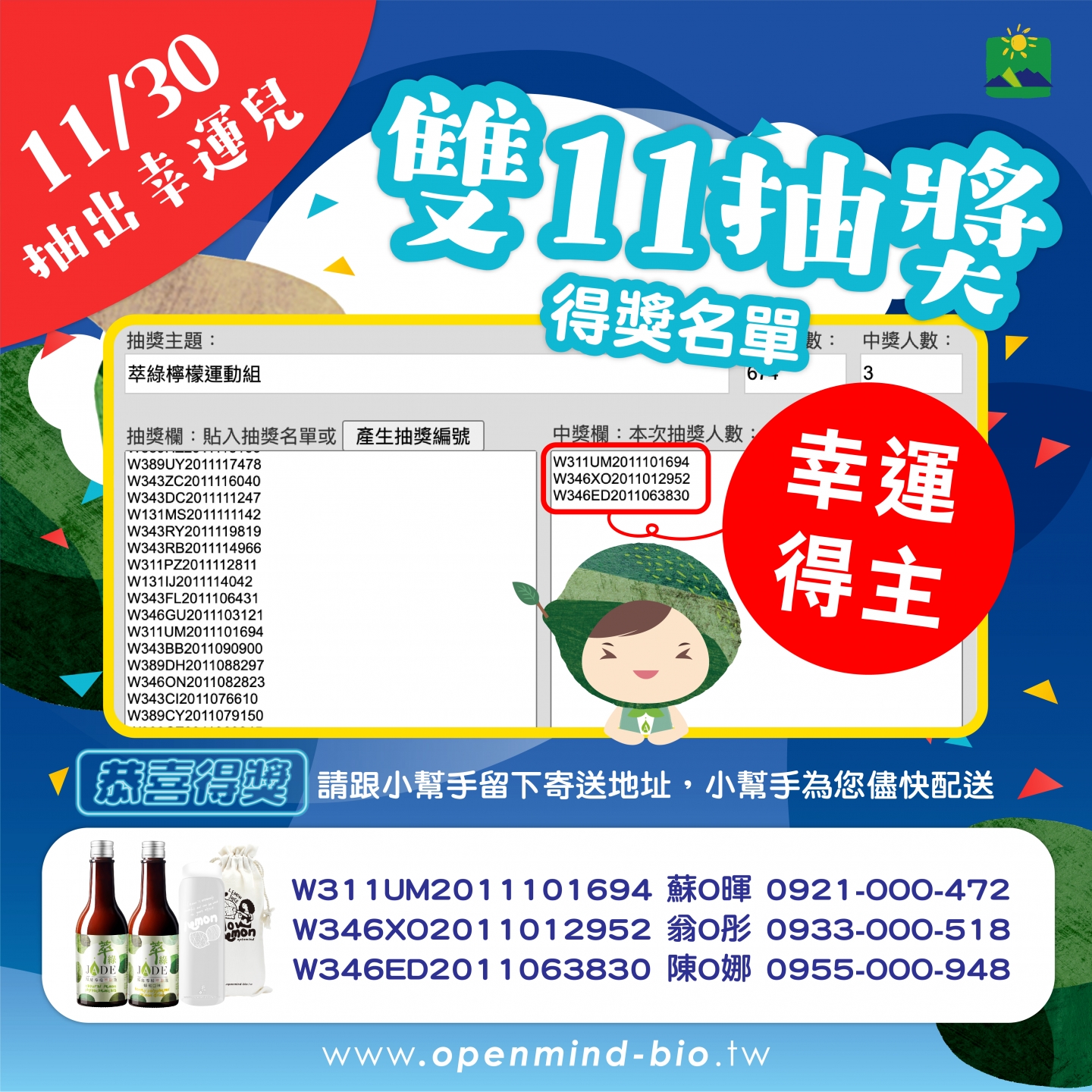 【雙11】得獎名單 公告
