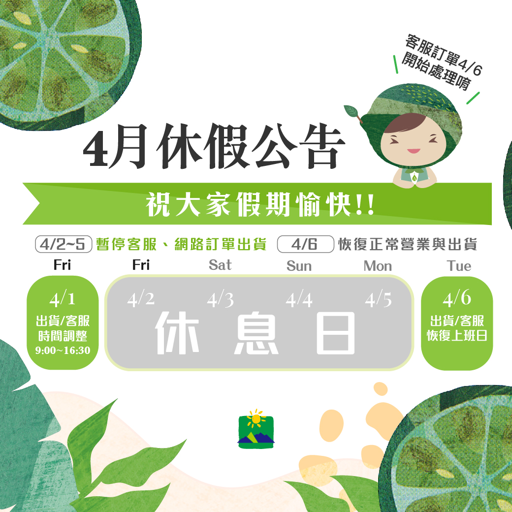 4/2~4/5 清明連假暫停客服、網路訂單出貨公告