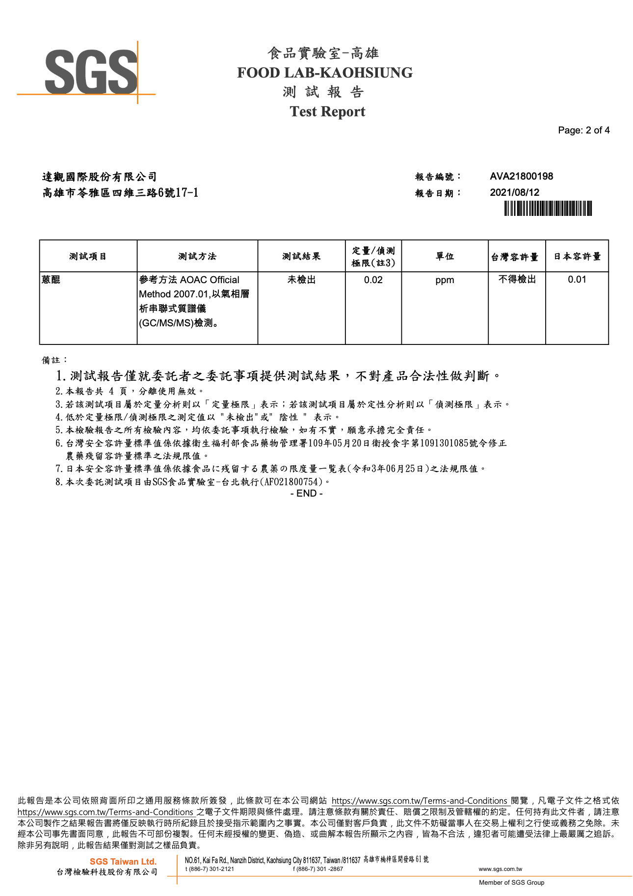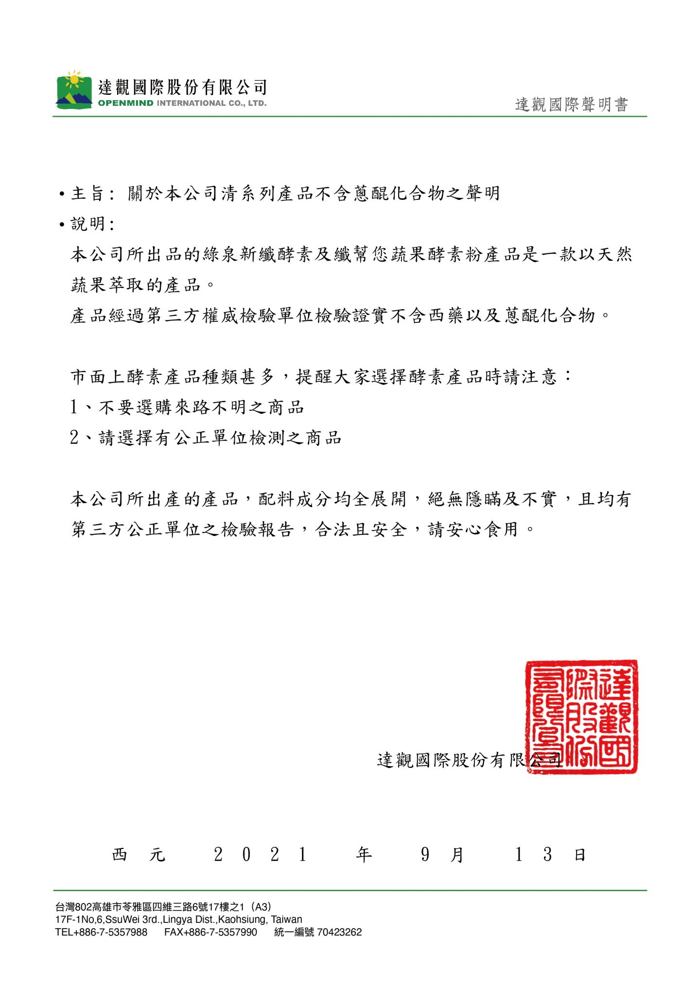 達觀國際清系列產品不含蔥醌化合物之聲明,詳情公告