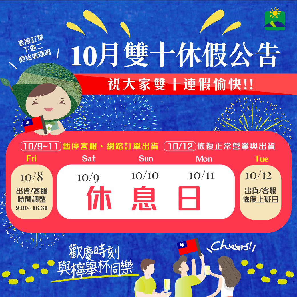 10/9~10/11雙十連假暫停客服、網路訂單出貨公告